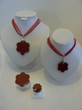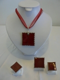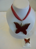 Collier grand papillon 25€, Bague 12,50 € | Ensemble de fleurs rouge | Collier grand carré 28 €, Bague carré 12,50 €, Bague losange carré 13,50 € | Collier bonhomme 25 € |