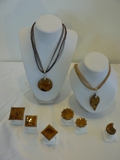 Collier coeur moyen 23 € | Ensemble couleur nougatine | Collier feuille 18€, Bague feuille 13,50 € | |